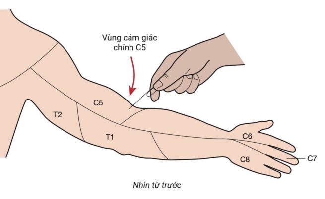 Vùng cảm giác chính của C5 là bên ngoài hõm khuỷu.