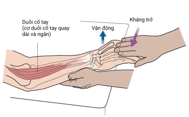 Cơ duỗi cổ tay (duỗi cổ tay quay dài và ngắn) được phân bố bởi dây thần kinh quay và đại diện cho mức rễ C6.
