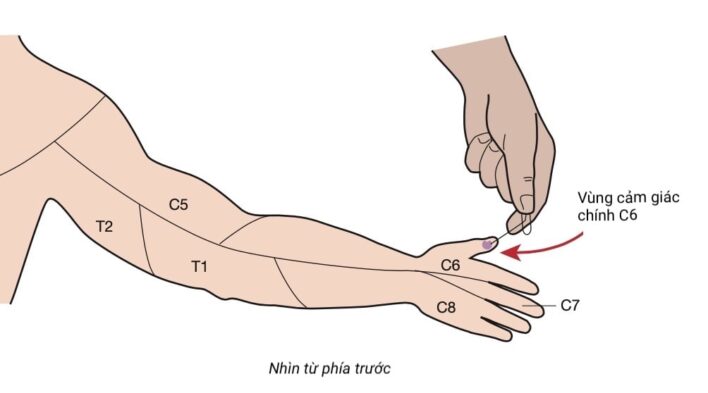 Vùng cảm giác chính của C6 là bờ trước đầu xa của ngón tay cái.