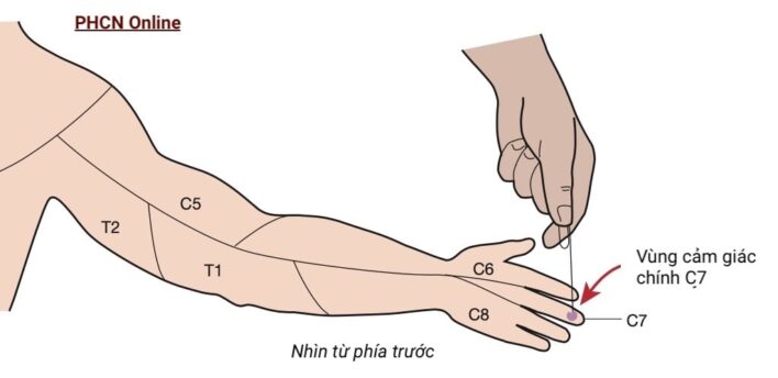 Vùng cảm giác chính của C7 nằm ở đầu xa ngón giữa.