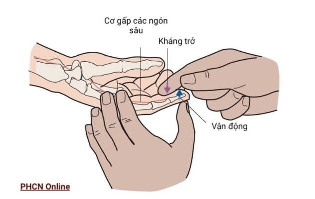 Cơ gấp các ngón tay dài (flexor digitorum profundus), được phân bố bởi các dây thần kinh giữa và dây trụ, được sử dụng để đánh giá mức rễ C8. (Ngoài ra có thể sử dụng cơ khép ngón cái, thần kinh trụ.)