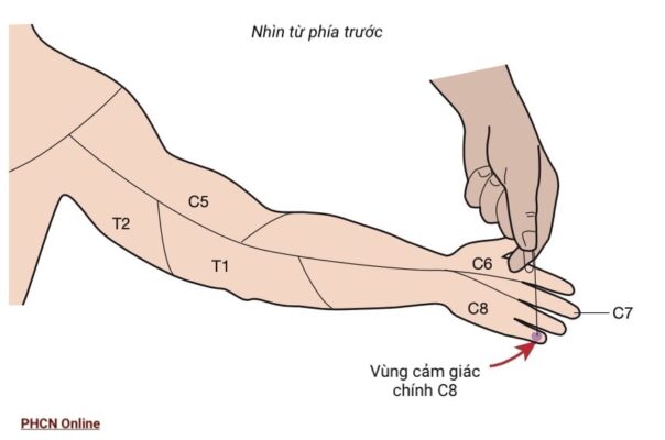 Vùng cảm giác chính của C8 nằm ở đầu tận ngón út.