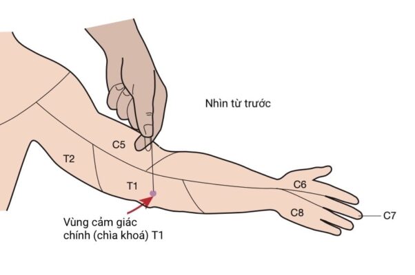 Vùng cảm giác chính của T1 nằm ở mặt trong của cánh tay ngay trên khuỷu tay.