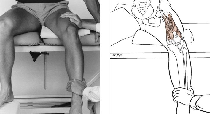 Thử cơ hamstring như một nhóm cơ: xương chày được đặt ở tư thế trung tính; nếu muốn đánh giá riêng cơ hamstring trong (bán gân, bán màng) hoặc ngoài (nhị đầu đùi), đặt xương chày ở tư thế xoay trong hoặc xoay ngoài tương ứng.