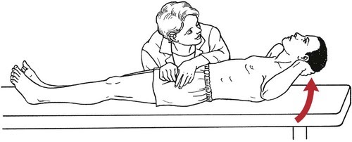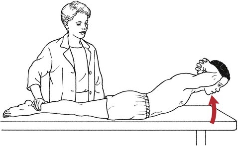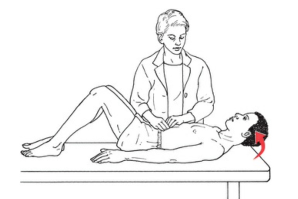 Bước 1: Nhấc đầu, người khám sờ sự co cơ bụng