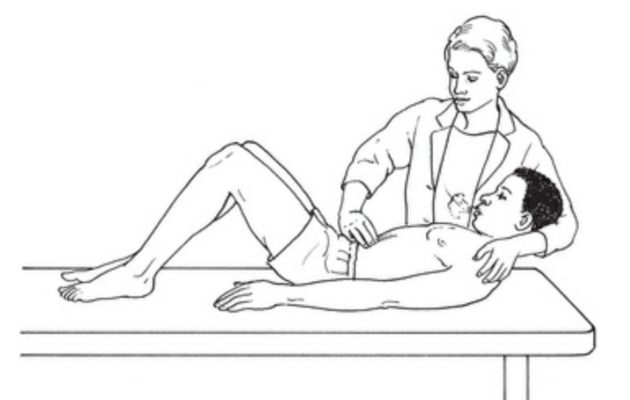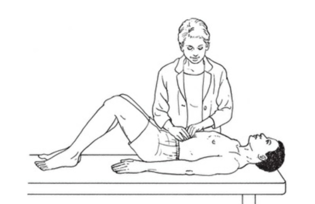 Bước 2: Trợ giúp, người khám sờ sự co cơ bụng