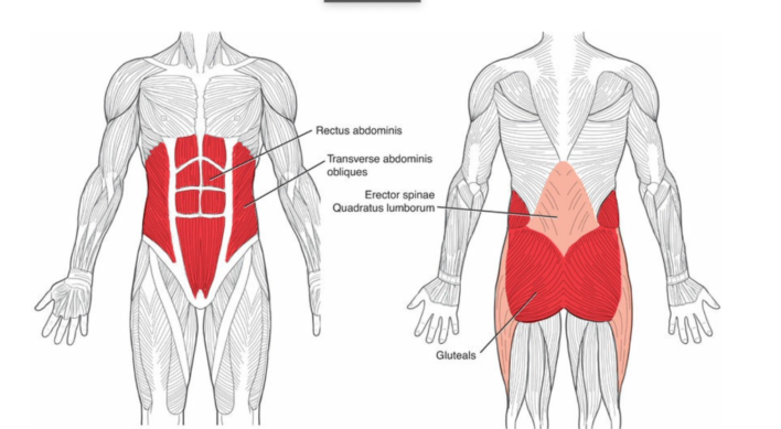 - Gluteus maximus (cố định xương chậu để tạo nền cho duỗi thân)