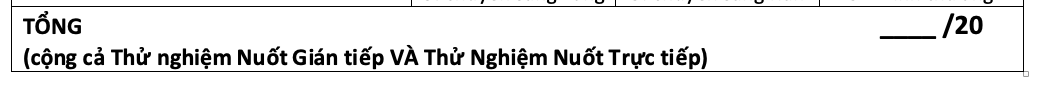 Tính tổng điểm của thử nghiệm nuốt gián tiếp và trực tiếp: