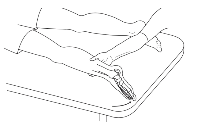 - Đánh giá cơ lực gập mu bàn chân, gập lòng bàn chân, vặn trong, vặn ngoài, gấp duỗi các ngón