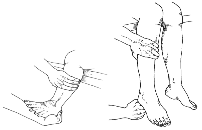 Test bóp (squeeze test), test gấp mu bàn chân, test gót chân- ngón cái (gõ dồn),