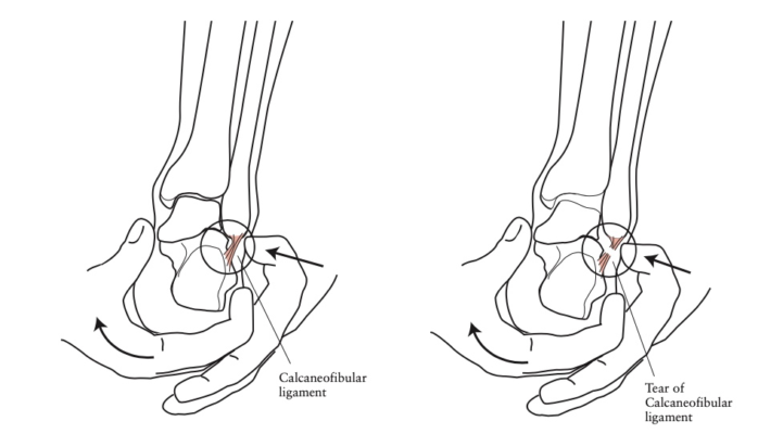 Tổn thương các dây chằng bên ngoài (sên mác trước, gót mác…)