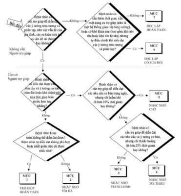 Ở mức 7, người bệnh diễn đạt những ý tưởng phức tạp hoặc trừu tượng một cách rõ ràng và trôi chảy.