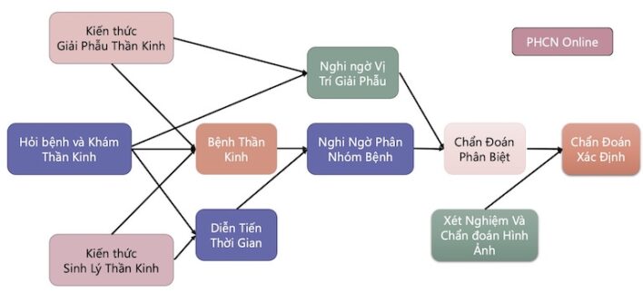 Phương pháp tiếp cận: Người thầy thuốc dựa vào kiến thức về giải phẫu thần kinh, sinh lý thần kinh, kiến thức về bệnh học kết hợp với các triệu chứng, dấu hiệu thu thập được qua hỏi bệnh sử, tiền sử, khám lâm sàng thần kinh để từ đó đi đến chẩn đoán và thiết lập mục tiêu can thiệp phù hợp.