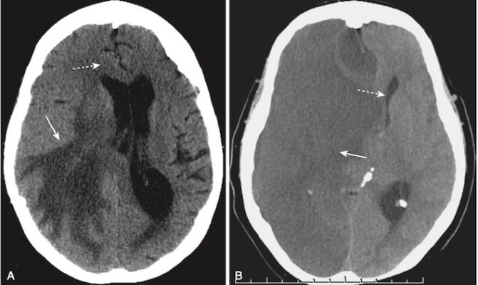 - Máu tụ dưới màng cứng mạn tính thường có đậm độ thấp so với phần còn lại của não (xem Hình 9, C).