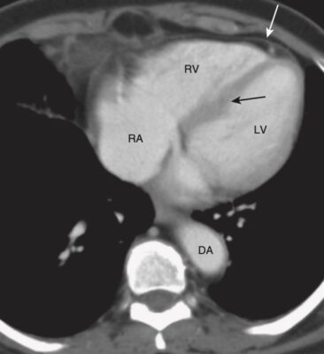 - Với thuốc cản quang tĩnh mạch, có thể nhìn thấy vách ngăn liên thất giữa tâm thất phải và trái.