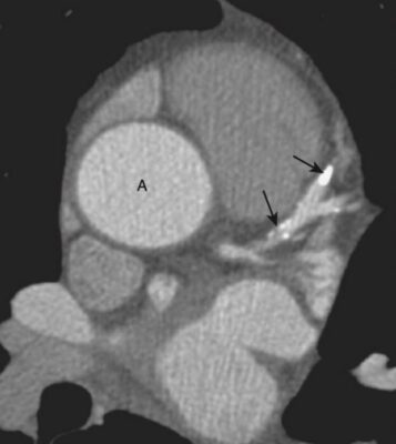 - Tính điểm canxi có thể giúp dự đoán các biến cố tim trong tương lai liên quan đến bệnh mạch vành do xơ vữa động mạch (Hình 11). Sự vắng mặt của canxi hóa động mạch vành có giá trị tiên đoán âm tính cao với tình trạng hẹp mạch vành đáng kể.