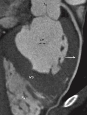 - Ba mặt phẳng tiêu chuẩn để xem hình ảnh CT của tim là trục (cắt ngang), đứng dọc (bên), và vành (trán). Hình 5 đến 4-10 minh hoạ các đặc điểm giải phẫu CT bình thường chính của tim và các mạch lớn.