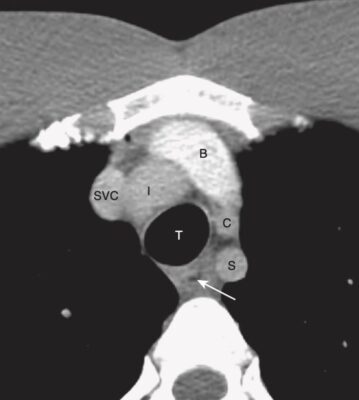 Dưới đây chỉ đề cập đến một vài mốc giải phẫu chính trên CT ngực và tất cả các hình ảnh quét được sử dụng sẽ được tăng cường chất cản quang, tức là bệnh nhân sẽ được tiêm thuốc cản quang tĩnh mạch để làm trắng các mạch máu.