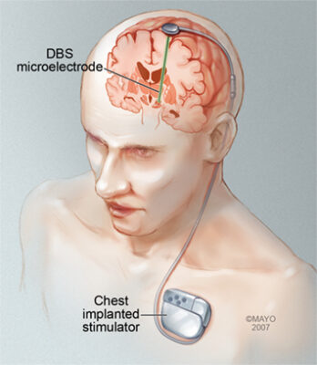 - Bước điều trị tiếp theo: Kích thích não sâu vào nhân bèo nhạt (globus pallidus), phần bên trong