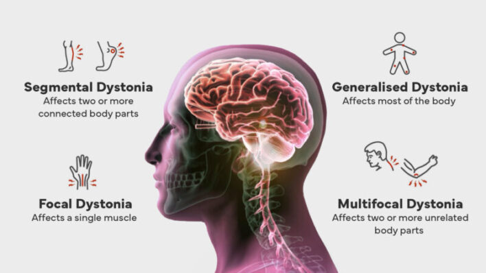 - Loạn trương lực cơ (Dystonia): Các co cơ kéo dài gây ra các vận động xoắn vặn và lặp lại hoặc tư thế bất thường.