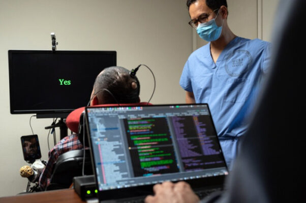 “Một trong những hậu quả tàn khốc nhất liên quan đến chấn thương não là mất khả năng giao tiếp,” Edward Chang, nhà giải phẫu thần kinh và nhà thần kinh học tại Đại học California, San Francisco, cho biết. Với các hệ thống BCI sơ khai, những người tham gia có thể di chuyển con trỏ trên màn hình máy tính bằng cách tưởng tượng bàn tay của họ đang di chuyển, và sau đó chọn chữ cái bằng cách tưởng tượng dùng bàn tay”nắm” lấy các chữ. Tốc độ kỷ lục của cách giao tiếp này, khoảng 40 ký tự mỗi phút, được thiết lập vào năm 2017 bởi một nhóm nghiên cứu tại Đại học Stanford.