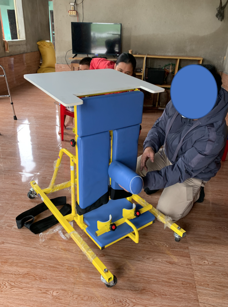 Hai trẻ lần lượt được anh kỹ thuật viên đặt thử vào khung đứng, và người mẹ được hướng dẫn tận tình về cách điều chỉnh khung sao cho phù hợp lẫn cách cố định trẻ. Cả mẹ lẫn trẻ đều toát lên sự hài lòng, vui sướng, nhưng lòng tôi lại trĩu nặng.