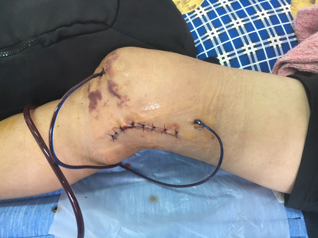 Tôi giao cho các bác sĩ-học viên khám các bệnh hội chẩn, kỹ thuật viên và học viên hướng dẫn các bài tập, còn tôi đi quanh. Bệnh hội chẩn chẳng có bệnh gì lạ, toàn là gãy xương, đứt rách dây chằng! Thế là tôi lại quan sát bệnh nhân ở giường bên cạnh, nhìn rõ là mới được mổ khớp gối phải, mà vẫn còn dịch máu thấm ướt băng thun ép chân. Chân không duỗi thẳng được, cứ gập gối. Có gì lạ đây, tôi thầm nghĩ.