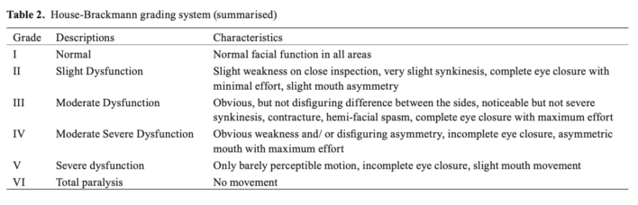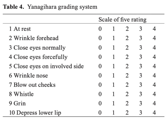 Về phân mức độ liệt, có nhiều thang đo liệt mặt được đưa ra, như House-Brackmann, Nottingham, Yanagihara…, mỗi thang đo đều có những ưu và nhược điểm riêng.