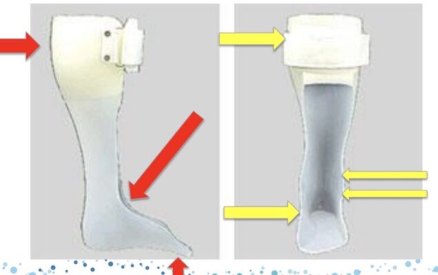 Trong nhiều trường hợp, vật lý trị liệu và thuốc làm giảm trương lực cơ không thể duy trì tầm vận động ở khớp bị ảnh hưởng và / hoặc cải thiện dáng đi và thường cần dụng cụ chỉnh hình. AFO (ankle foot orthosis, dụng cụ chỉnh hình cổ bàn chân) là loại nẹp tiêu chuẩn được sử dụng cho những bệnh nhân như vậy. Chỉ định và loại AFO sẽ phụ thuộc vào nhiều yếu tố khác nhau. Một nẹp AFO cố định ‘bán tại quầy’ có thể được sử dụng cho một bệnh nhân bất động đơn giản chỉ cần để duy trì tầm vận động của cổ chân hoặc để tạo thuận lợi cho di chuyển từ ngồi sang đứng. Các AFO cứng hơn sẽ cần thiết cho những bệnh nhân cần chịu trọng lượng lên bàn chân bị ảnh hưởng. Có thể cần phải điều chỉnh AFO để chuyển trọng tâm về phía trước và phía sau tuỳ theo tình trạng của các khớp gần và sức mạnh của phần còn lại của chân để tránh tạo ra những momen kháng lại một nhóm cơ yếu.