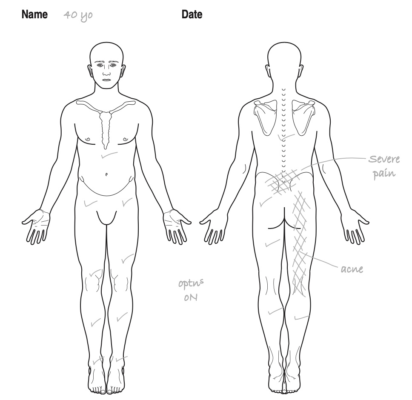 Triệu chứng chính được đưa vào danh sách ưu tiên là đau lưng và chân tăng lên sau khi lái xe 40 phút.