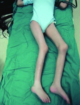 - Bệnh nhi này, mặc dù được can thiệp sớm, nhưng do tình trạng liệt co cứng tứ chi nặng, nên các biến dạng vẫn xảy ra: vẹo cột sống vùng thắt lưng, khớp háng gió thổi. Tuy nhiên cũng nhận xét là cổ bàn chân vẫn giữ được tư thế đúng (bằng các bài tập kéo dãn của bố mẹ hàng ngày và đeo nẹp AFO). Trong quá trình dịch, người dịch lại hiểu thêm về biến dạng khớp háng gió thổi, một biến dạng ít được mô tả ở Việt Nam.