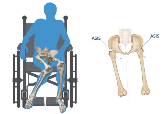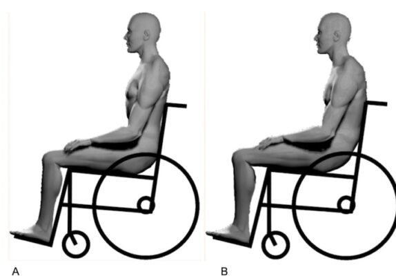 - Canh chỉnh trục kém ở háng và xương chậu, xương chậu bị dịch chuyển ra phía trước trên ghế dẫn đến tình trạng ngồi tựa lên xương cùng (sacral sitting)