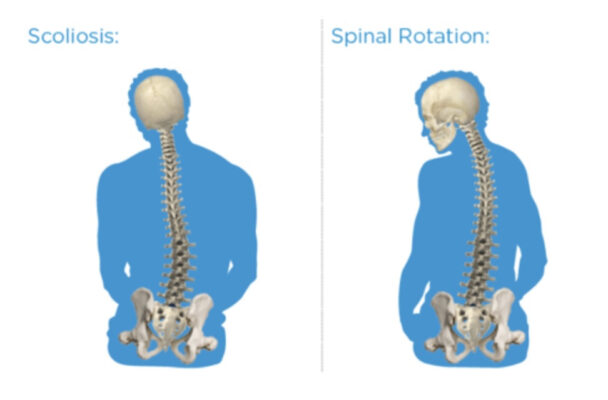 - Vẹo cột sống rõ ở vùng thắt lưng, hai háng và xương chậu bị biến dạng gió thổi sang bên phải