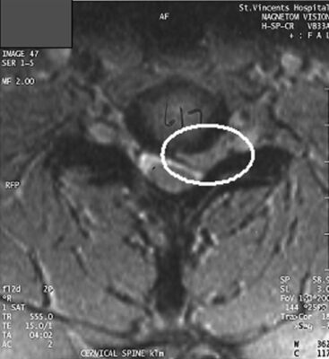 - Khởi phát ngay lập tức với đau và cứng cổ (trái và phải). Đau và cứng ngày càng tăng. Hiện tại đau thường xuyên