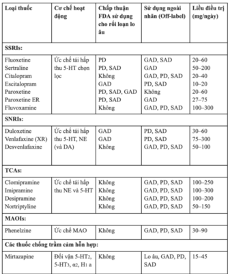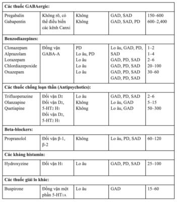 Một số loại thuốc sử dụng trong rối loạn lo âu