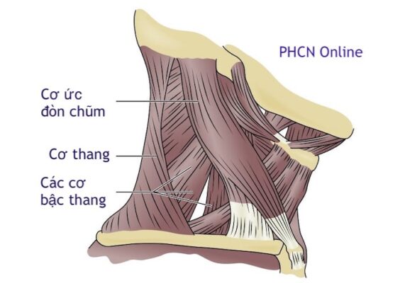 - Dấu hiệu chính trong bong gân hoặc chấn thương do căng cơ cột sống cổ là đau hoặc hạn chế với tầm vận động cột sống cổ. Kèm theo, bệnh nhân có thể có điểm đau khi ấn ở cơ cạnh cột sống cổ, cơ thang, cơ chẩm hoặc các cơ vùng cổ trước (như cơ ức đòn chũm) (Hình 3).
