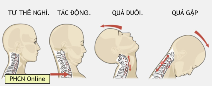 Cơ chế chấn thương khá phức tạp. Khi va chạm với xe cơ giới từ phía sau, gia tốc của đầu và cổ ban đầu chậm hơn gia tốc của xe. Cuối cùng, gia tốc của đầu và cổ đạt tới 2,5 lần gia tốc tối đa của xe, điều này sau đó dẫn đến giảm tốc đáng kể ở cổ trong giai đoạn sau. Mặc dù chấn thương như vậy cũng có thể dẫn đến gãy xương, tổn thương đĩa đệm hoặc thần kinh, theo định nghĩa thì bong gân hoặc căng cơ vùng cổ không tính đến các bất thường này.