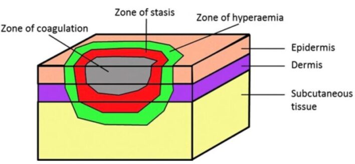 - Mô hình 3 vùng của Jackson (Hoại tử ở bên trong, Ứ trệ ở trung gian, Sung huyết ở ngoài).