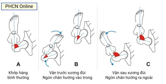 - retroversion: độ vặn ra sau của xương đùi