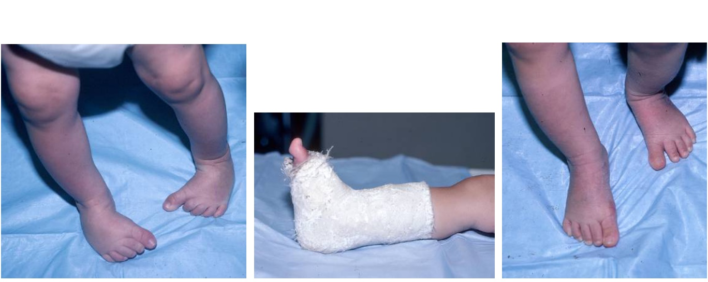 Sự phát triển của chi bắt đầu vào tuần thứ năm trong tử cung với sự xuất hiện của các chồi chi (limb buds). Tư thế trong tử cung tạo nên xoay ngoài ở háng, xoay trong của xương chày và các tư thế khác nhau của bàn chân. Vào lúc thai được 5 tháng, xương chày thường xoay trong 20 °.