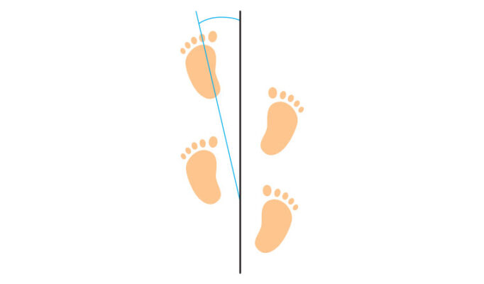 Trẻ mới biết đi thường hơi xoay chân vào trong và dần dần chuyển sang xoay ngoài, với góc tiến bàn chân xoay ngoài khoảng 10 ° khi được 8 tuổi, sau đó ít có sự thay đổi.