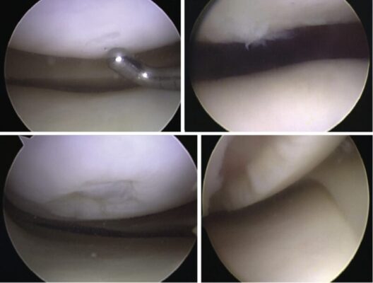 - Vi gãy xương (MF) liên quan đến việc cắt bỏ phần sụn bị tổn thương bằng nội soi thành các cạnh vuông ổn định. Vùng sụn vôi hóa được lấy bỏ và tiến hành xuyên thủng vỏ bằng dùi, cho phép chảy máu tủy và hình thành cục máu đông (Hình 3).