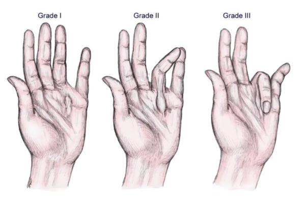 - Độ 2 – Hình thành dải như dây thừng gây hạn chế duỗi ngón