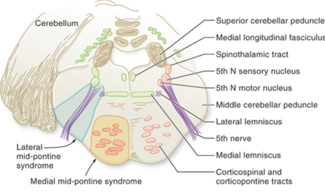 - Hội chứng Grenet: Ảnh hưởng đến sợi dây thần kinh sọ V lemniscus, sợi dây thần kinh sọ VII và bó gai đồi thị. Dẫn đến thay đổi cảm giác ở mặt cùng bên, liệt nửa người đối bên. Nó có thể do khối u.