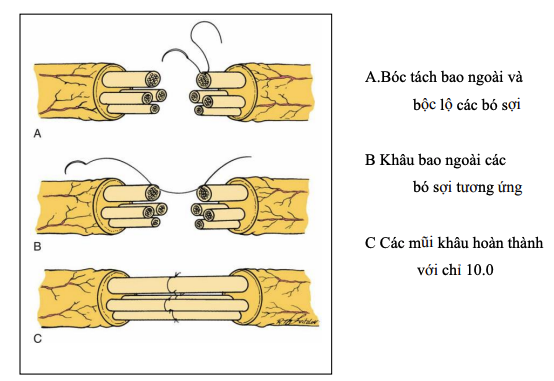 - Khâu nối thần kinh trực tiếp (Primary nerve repair): Thực hiện khi dây thần kinh bị đứt lìa hoàn toàn và có thể tiếp cận được hai đầu thần kinh.