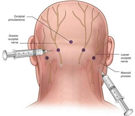 - Tiêm Botulinum vào dây thần kinh chẩm lớn cũng đã được mô tả, nhưng bằng chứng còn hạn chế.