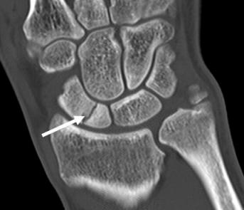 Gãy xương thuyền không di lệch thường khó đánh giá bằng X quang.