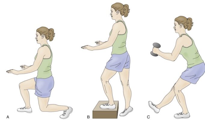 - Các cơ mông: hoạt động và sức bền cũng như các cơ dạng và xoay ngoài háng trong các tư thế gấp háng khác nhau