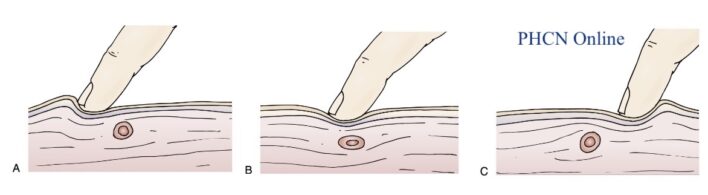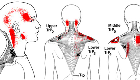 - Để xác định các điểm kích hoạt, cần sờ bằng các đầu ngón tay vuông góc với hướng của sợi cơ để xác định các dải cơ bị căng, và sau đó sờ dọc dải cơ căng để khu trú điểm kích hoạt cân cơ. Ấn bằng tay lên một điểm kích hoạt sẽ gây đau ở vùng đó và cũng có thể gây đau ở một vị trí xa (đau lan) (Hình 2). Cảm giác đau khi ấn giống như cơn đau mà bệnh nhân thường trải nghiệm (tái tạo triệu chứng).