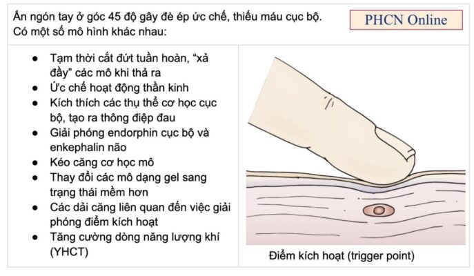 - Các kỹ thuật nhằm bất hoạt điểm kích hoạt: châm kim khô (dry needling), Tiêm điểm kích hoạt (MTrP injections, TPIs) với thuốc thuốc tê tại chỗ, tiêm botox…